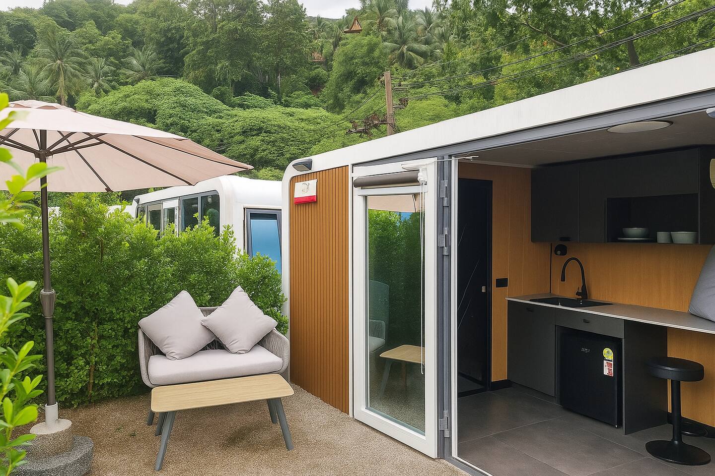 Nomad Cabin at Apple House – Cozy Stay Just 1 Minute from the Beach Discover comfort and convenience at Nomad Cabin, located in the heart of Phuket. The spacious cabin features a 27 m² terrace, a Queen-size bed, private bathroom with shower, and a relaxing sitting area. Guests can enjoy a large outdoor swimming pool, 24-hour front desk service, and daily housekeeping. Local markets, cafés, shops, and beach clubs are just steps away — perfect for couples and solo travelers alike.