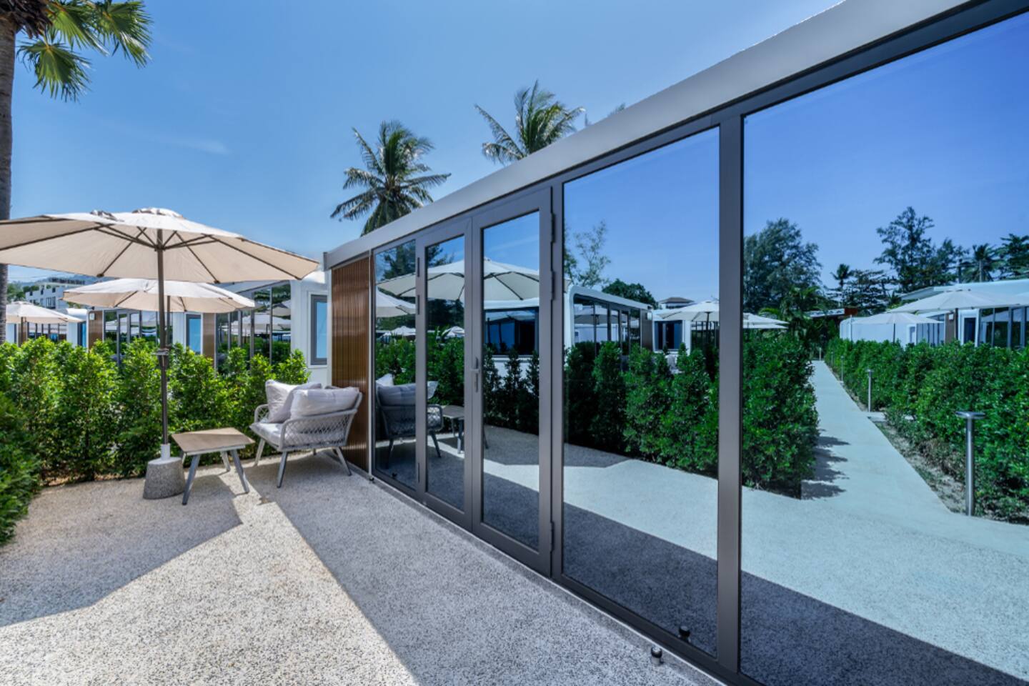 Relax in this spacious cabin featuring a 27 m² private terrace, a comfortable Queen bed, a private shower, and a cozy lounge area. Enjoy the large shared swimming pool, 24-hour front desk, and daily cleaning service. Just a 1-minute walk to the beach! Surrounded by local markets, cafés, shops, and lively beach clubs — the ideal spot for travelers seeking both comfort and adventure. Book your tropical escape today!